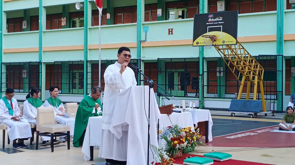Misa pembukaan tahun ajaran baru 2025/2026 digelar pada Rabu, 23 Juli 2025 kemarin. Perayaan misa ini dipimpin oleh Romo Dr. Bernardus Singgih Guritno, Pr. dan ditemani oleh Frater Bambang.